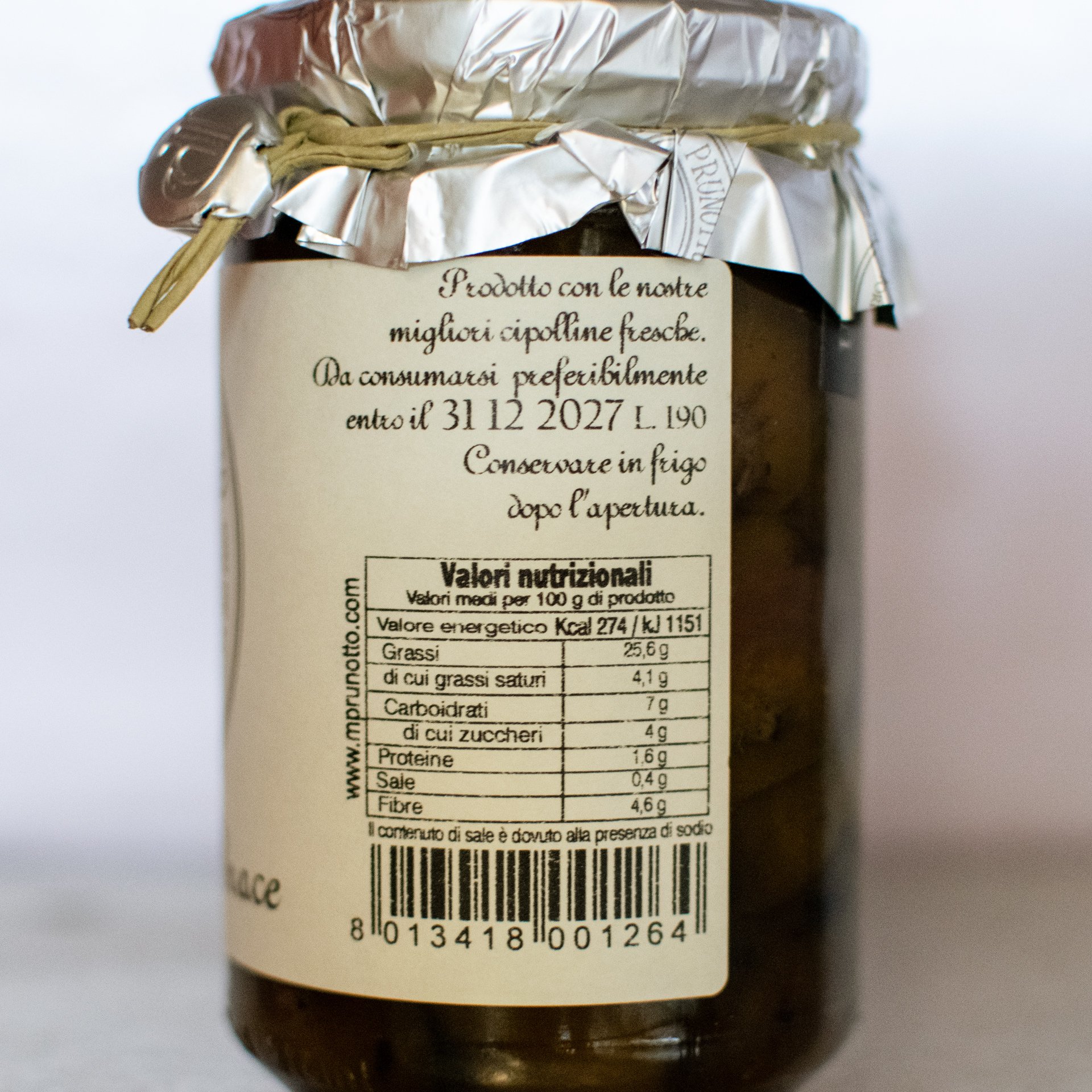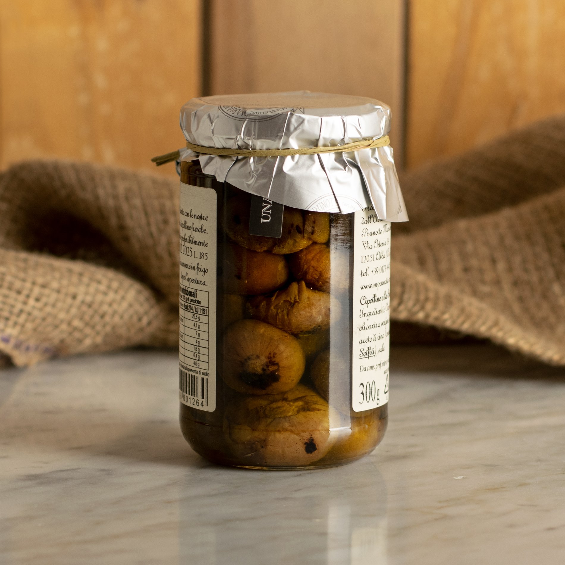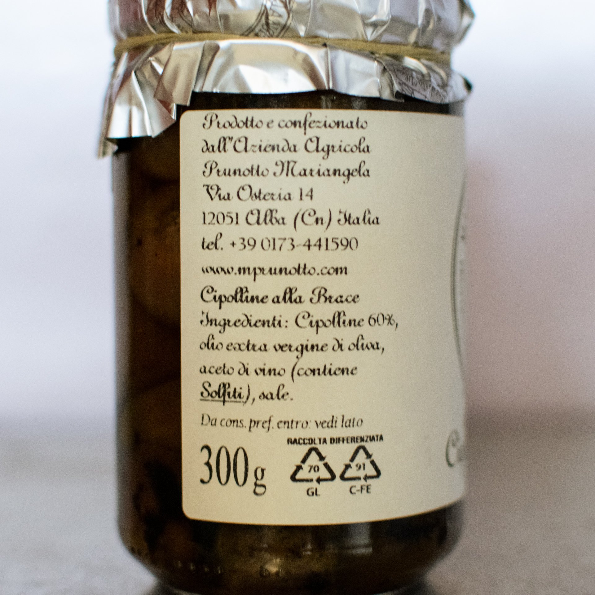 Le Cipolline alla brace di Mariangela Prunotto vengono lavorate dal prodotto rigorosamente fresco e appena raccolto. Vengono poi arrostite con metodo tradizionale e conservate in olio extra vergine d'oliva per esaltare le proprietà.