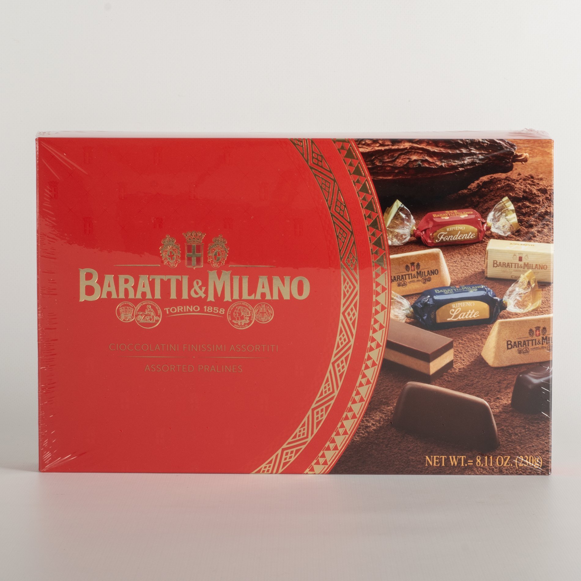Zucchero, pasta di cacao, burro di cacao, latte intero in polvere, grasso vegetale (cocco, burro di cacao, girasole, oliva), nocciole, emulsionante: lecitina di soia, aroma naturale. Può contenere tracce di mandorle e pistacchi. Senza glutine.