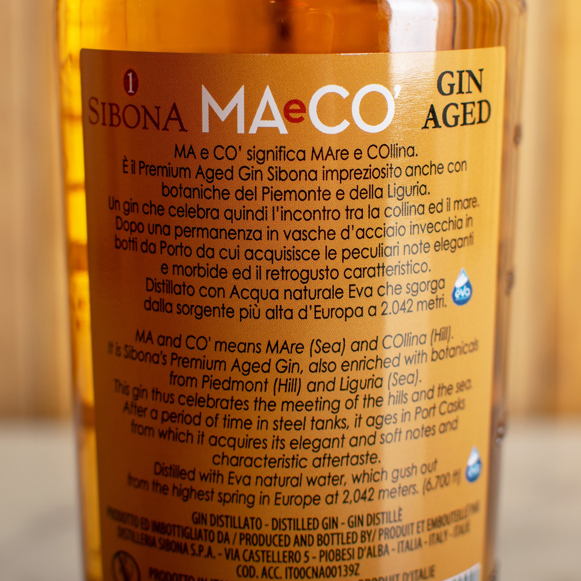 Ma e CO' bedeutet MEER und HÜGEL. MAeCO‘ ist der neue Premium Dry Gin von Sibona, verfeinert mit Botanicals aus dem Piemont und Ligurien. Unter den Kräutern des Piemont finden wir: Wacholderbeeren, Lavendel aus Sale San Giovanni, Salbei, Rosmarin, Damaszenerrose und Nebbiolo-Weinblätter. Unter den Kräutern Liguriens finden wir: Zitrone, Thymian, Fernambukorange und Genueser Basilikum d.o.p.