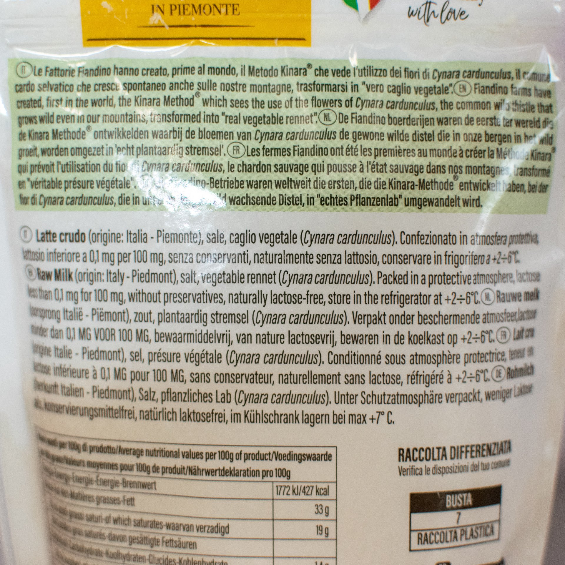 Fattorie Fiandino war weltweit der erste Hersteller, der die Kinara-Methode eingeführt hat, bei der die Blüten von Cynara cardunculus verwendet werden, einer in den piemontesischen Bergen wild wachsenden Distel, die sich in echtes pflanzliches Lab verwandeln kann.