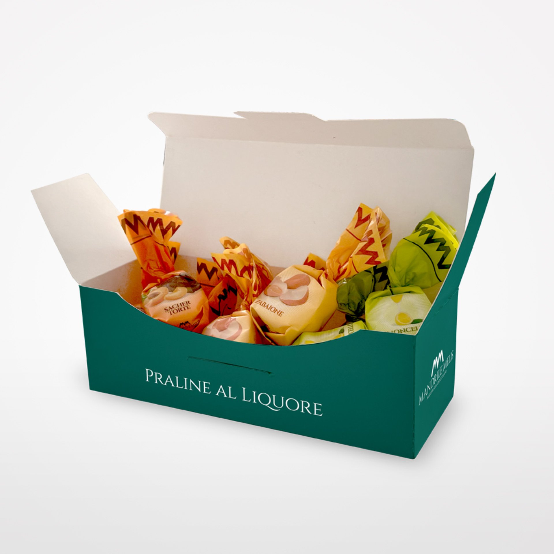 Zartbitterschokolade 30 % (Kakaomasse, Zucker, Kakaobutter, Emulgator: Lecithine (SOJA), natürliches Vanillearoma), Milchschokolade (Zucker, Kakaobutter, Vollmilchpulver, Kakaomasse, Emulgator: Lecithine (SOJA), natürliches Vanillearoma), weiße Schokolade (Zucker, Kakaobutter, Milchpulver, Emulgator: Sonnenblumenlecithine, natürliches Vanillearoma), Glasur [Glukosesirup, Wasser, Zucker, Verdickungsmittel (Pektin, Carrageen), Säureregulatoren (Zitronensäure, Natriumcitrat), Konservierungsmittel (Kaliumsorbat)], Aprikosencreme 12 % [Saccharosesirup, Aprikosenpüree 29 %, Glukosesirup, Farbstoffe (Beta-Carotin, Schwarzkarottenextrakt), Säuerungsmittel: Zitronensäure, Geliermittel: Pektin, Aromen)], Vanillealkohol (Alkohol, Wasser, Aromazubereitung). Kann enthalten: Nüsse (Haselnüsse, Pistazien, Mandeln), Erdnüsse, Eier, glutenhaltiges Getreide.
