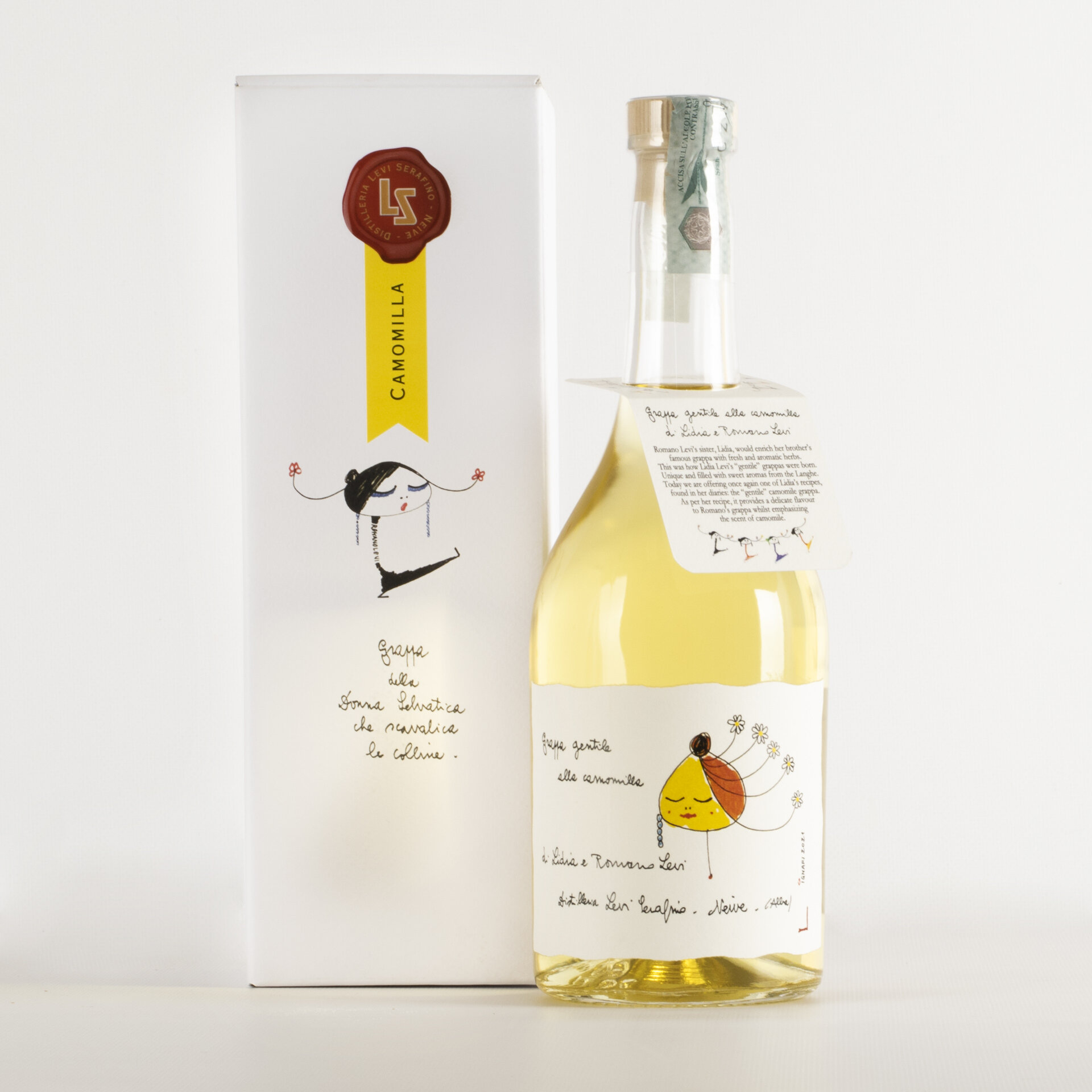 Questa grappa è realizzata grazie alla ricetta trovata nel diario di Lidia Levi, dove la grappa da monovitigno di Nebbiolo deriva da vinacce messe a macerare con i profumi e gli aromi della camomilla delle Langhe.