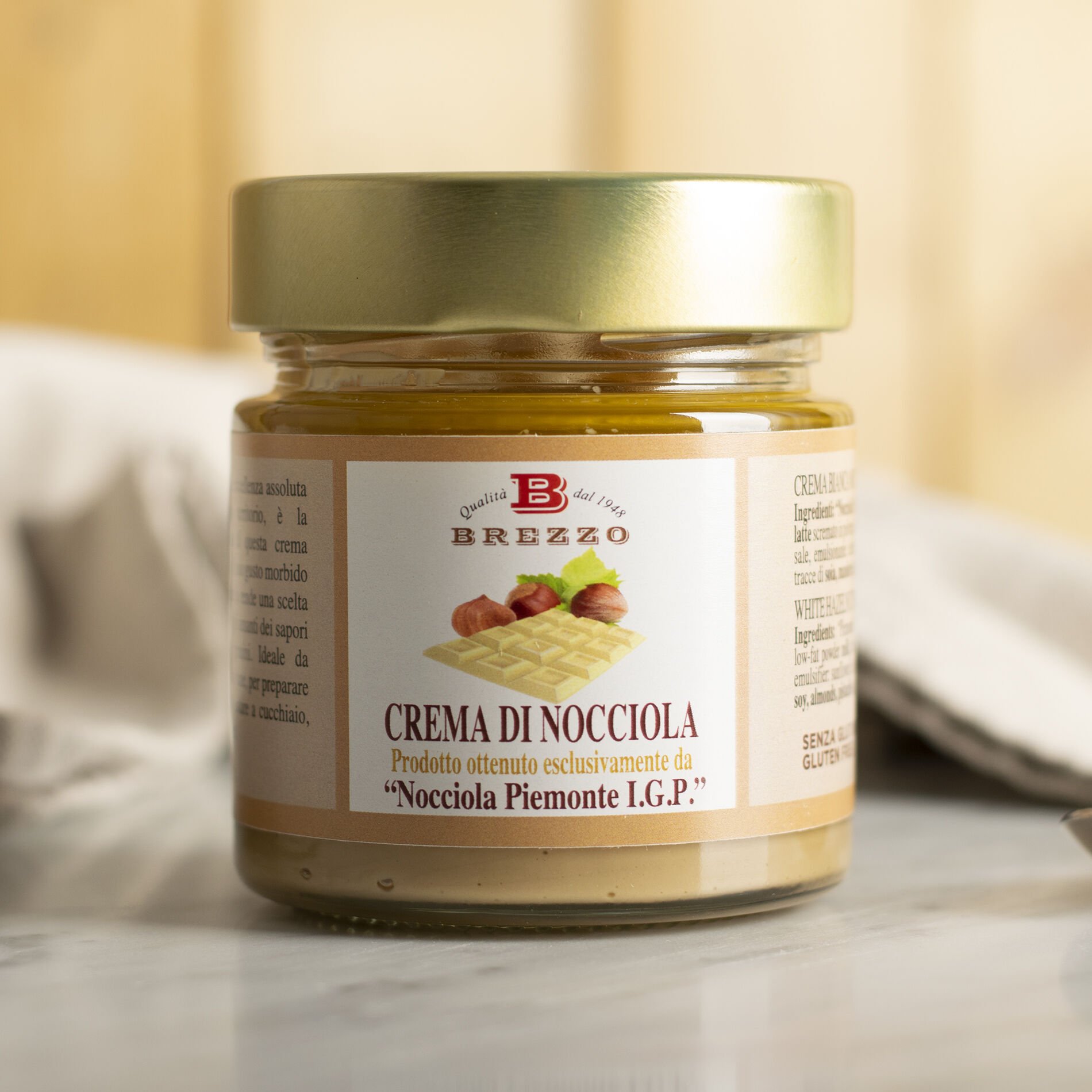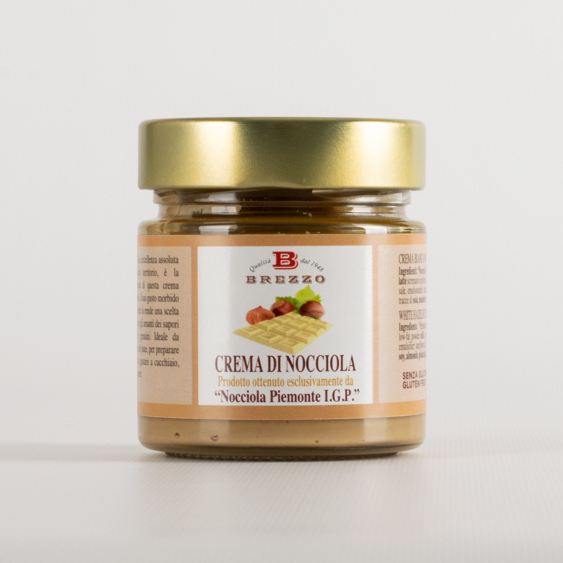 Die Piemont-Haselnusscreme I.G.P. di Brezzo wird nur aus den besten piemontesischen Haselnüssen I.G.P. hergestellt. Das Ergebnis ist eine fabelhafte Creme!