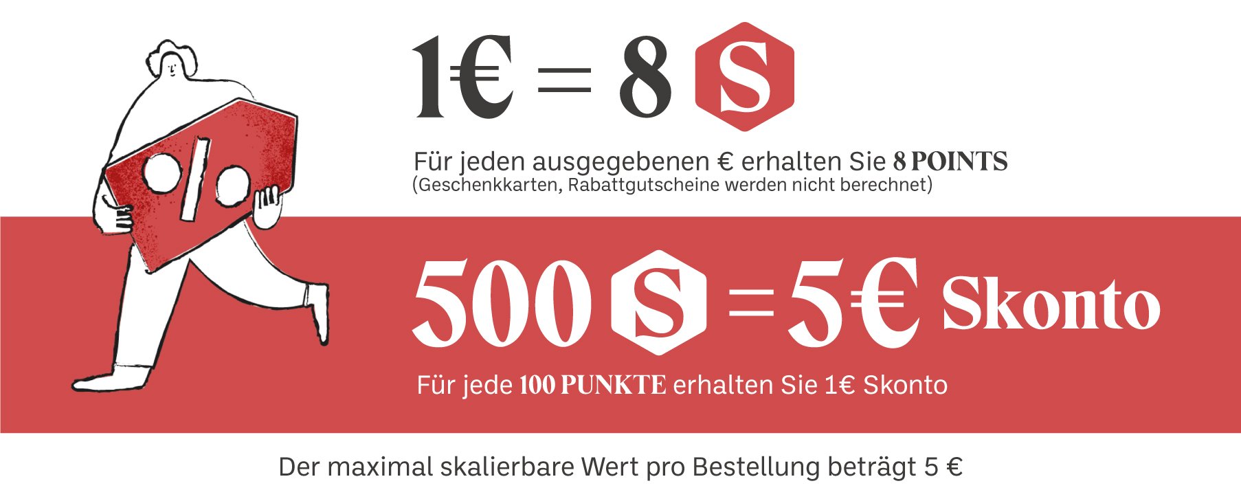 Für jeden vom Kunden bezahlten Euro Endausgaben (ohne Geschenkkarten, Rabattgutscheine) erhalten Sie 8 Shop Piemonte-Punkte (ohne Versandkosten).