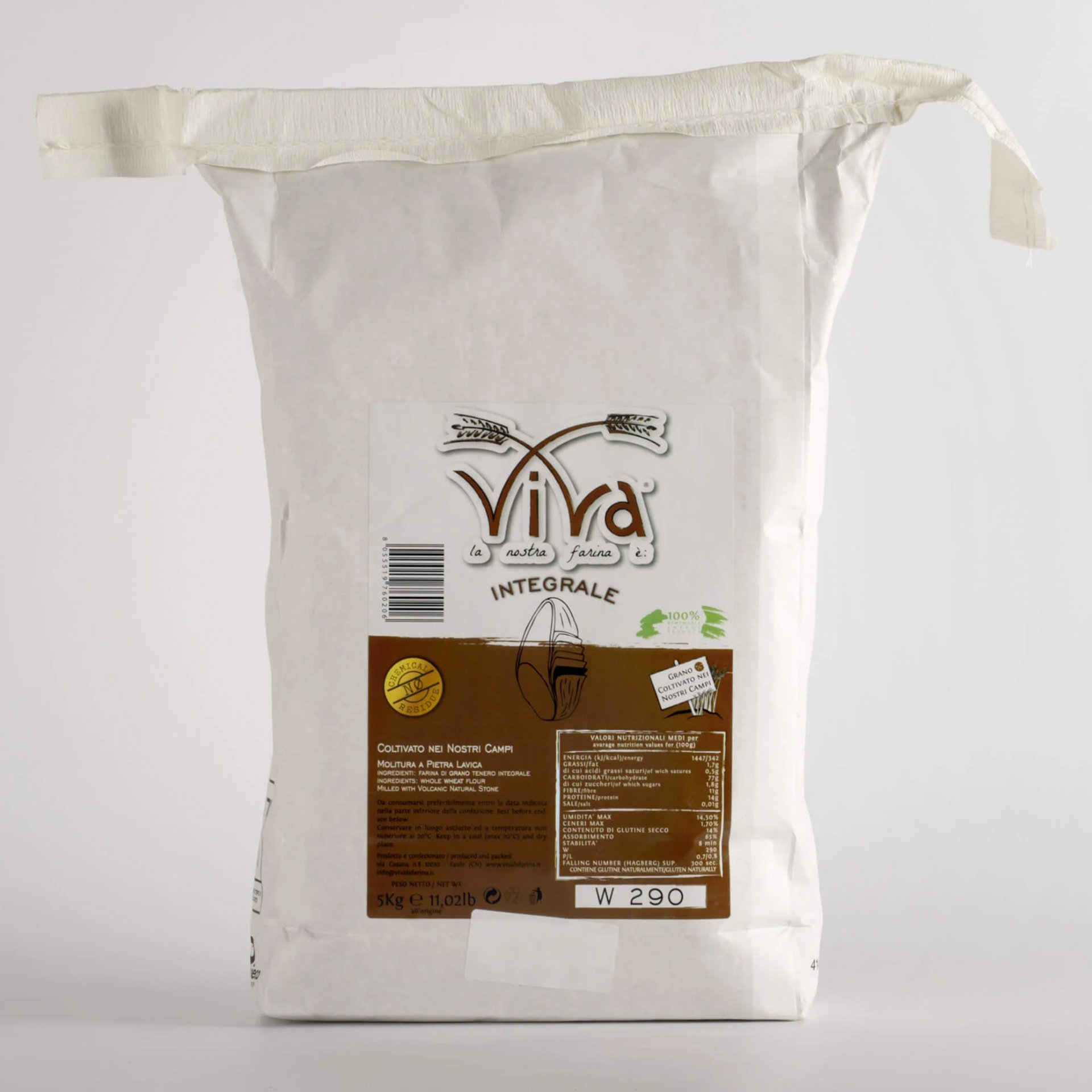 "Weizenvollkornmehl aus einer Weichweizenmischung, die dank ihres hohen Eiweiß- und Ballaststoffgehalts in der Lage ist, einen hohen Prozentsatz an Flüssigkeit zu absorbieren.