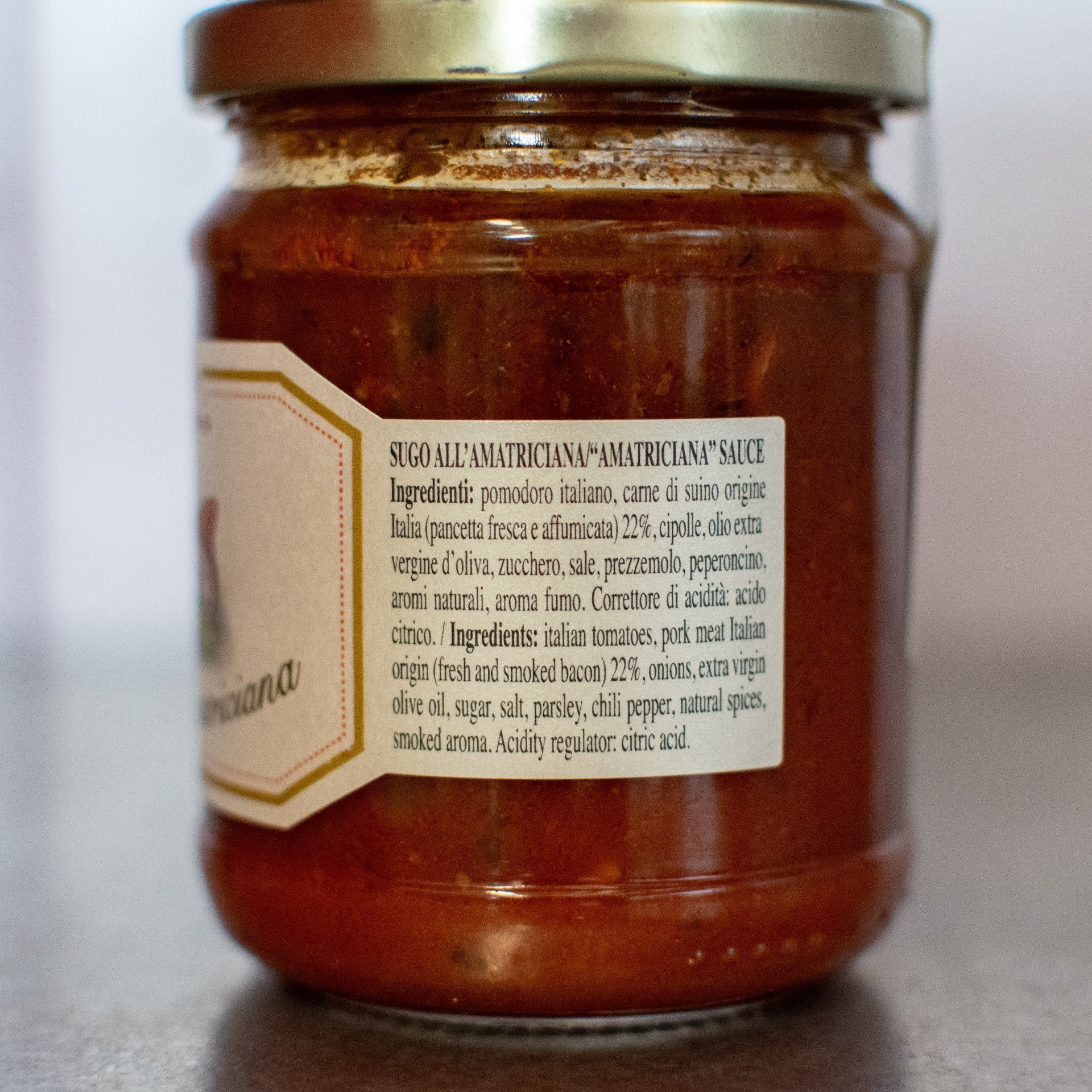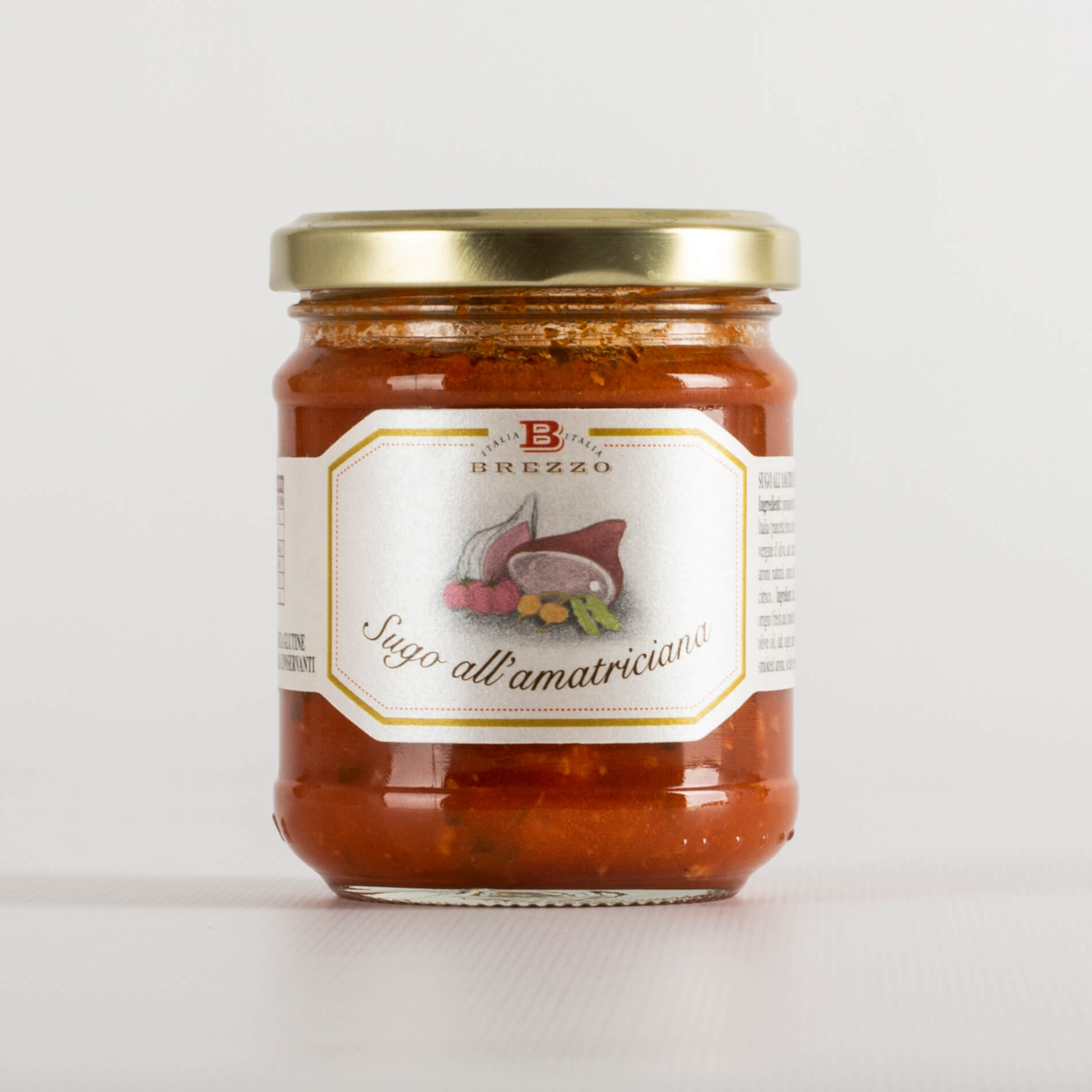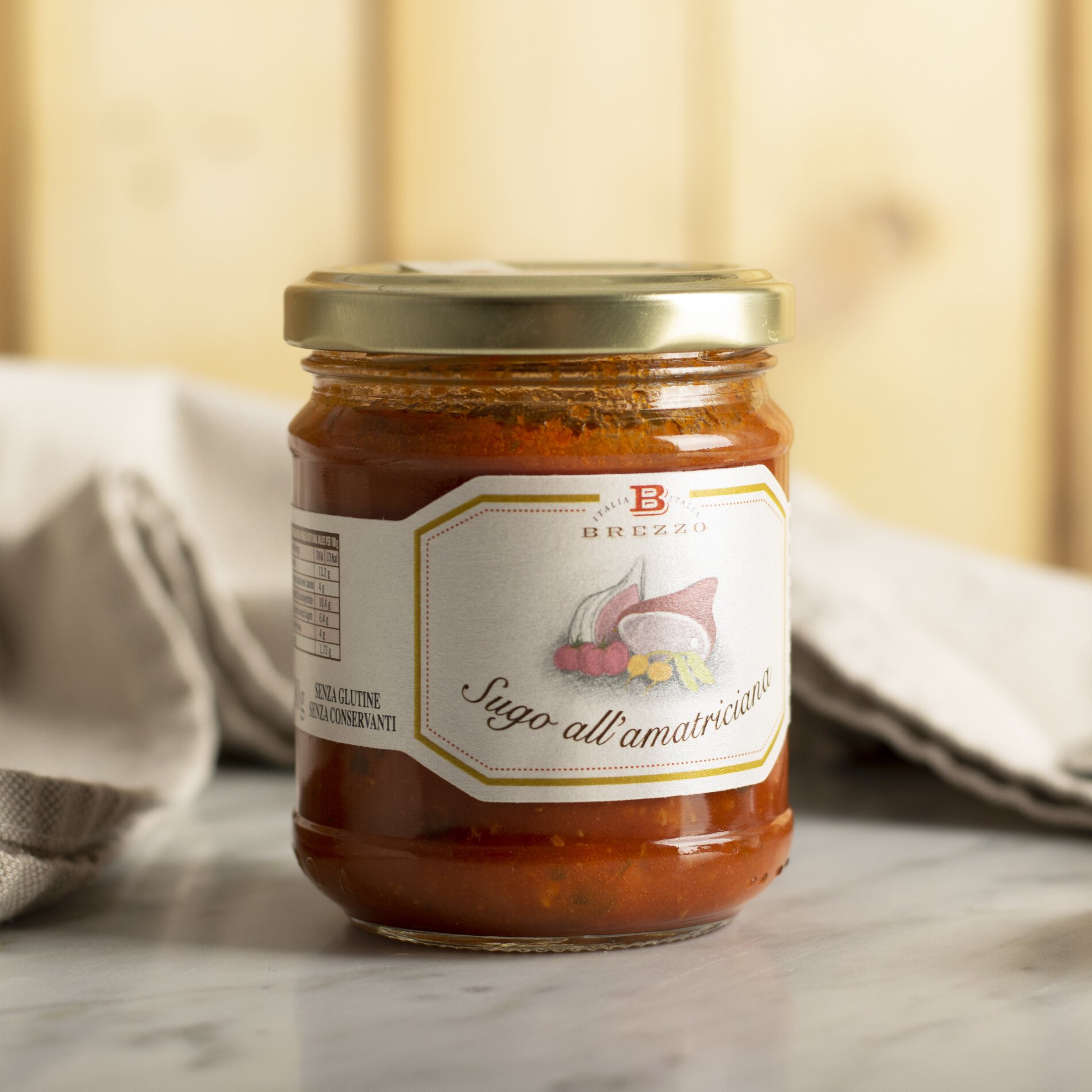 Brezzo Amatriciana Sauce is made with Amatrice bacon and tomato sauce, a sauce for pasta typical of Lazio but loved throughout Italy.