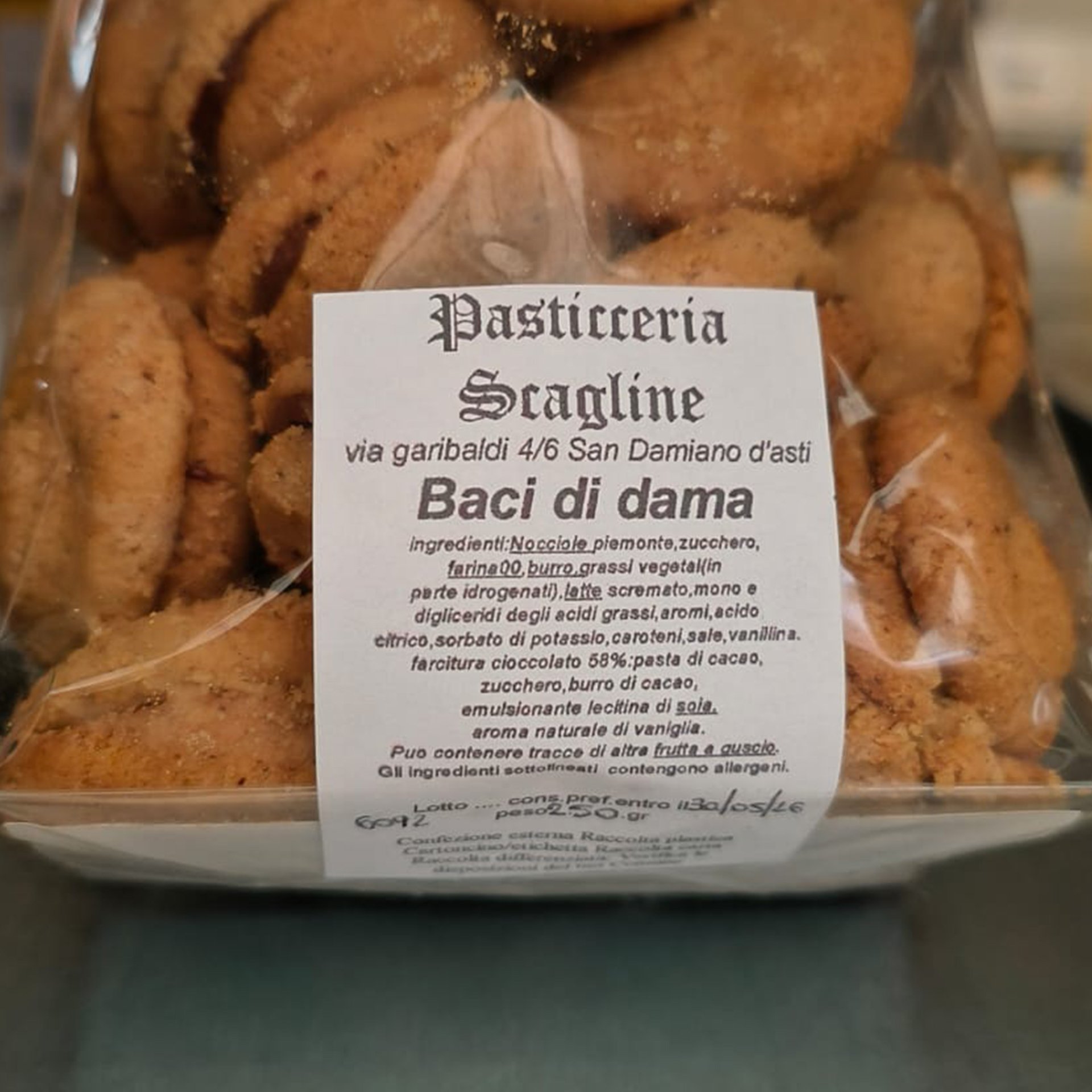 A classic within the piedmontese biscuits. Baci di Dama cookies are very typical of Piedmont where they were first created a century ago. Since then and still nowadays the Baci di Dama are made with the same ingredients and with the same shape. They are two fragrant biscuits that are united in a kiss of dark chocolate.