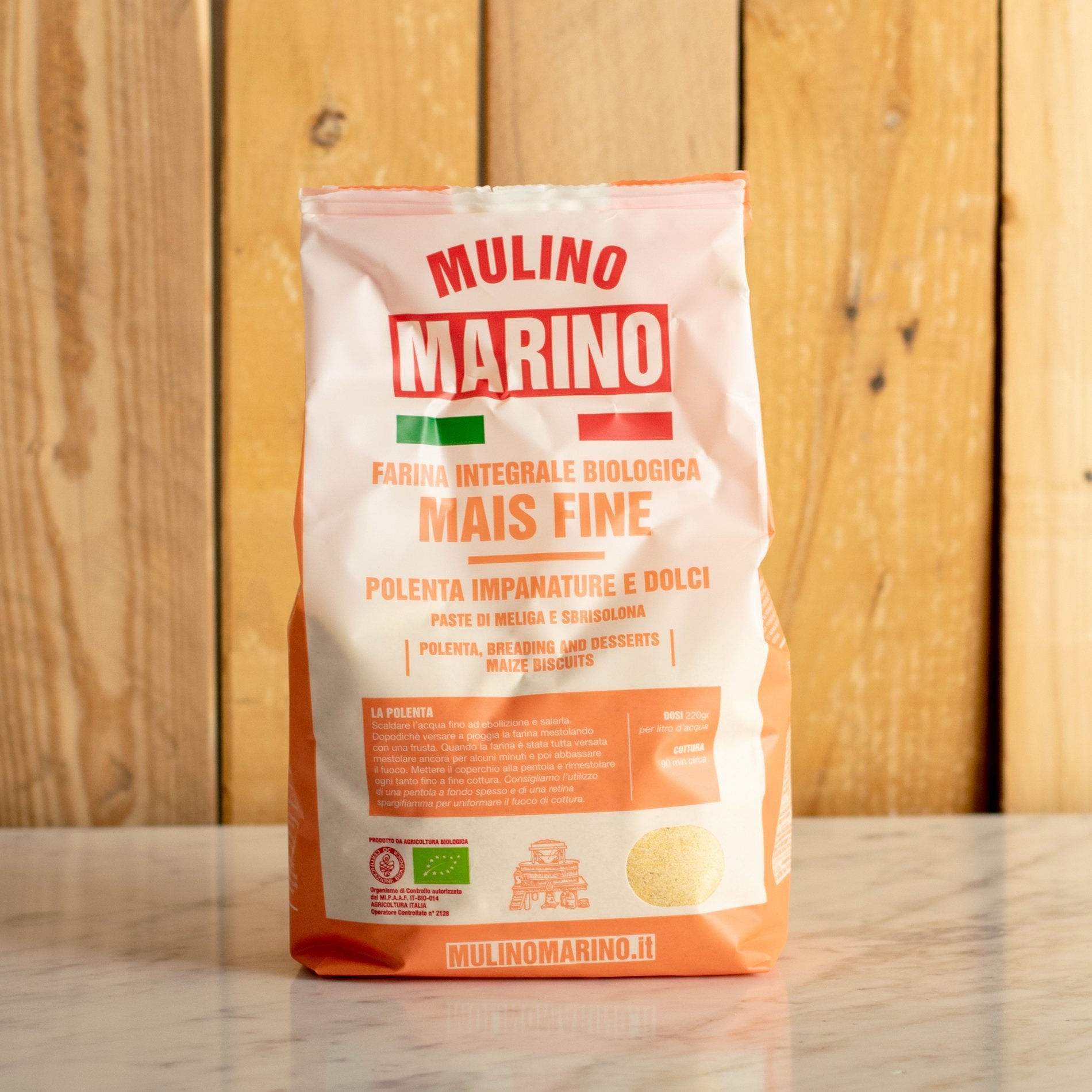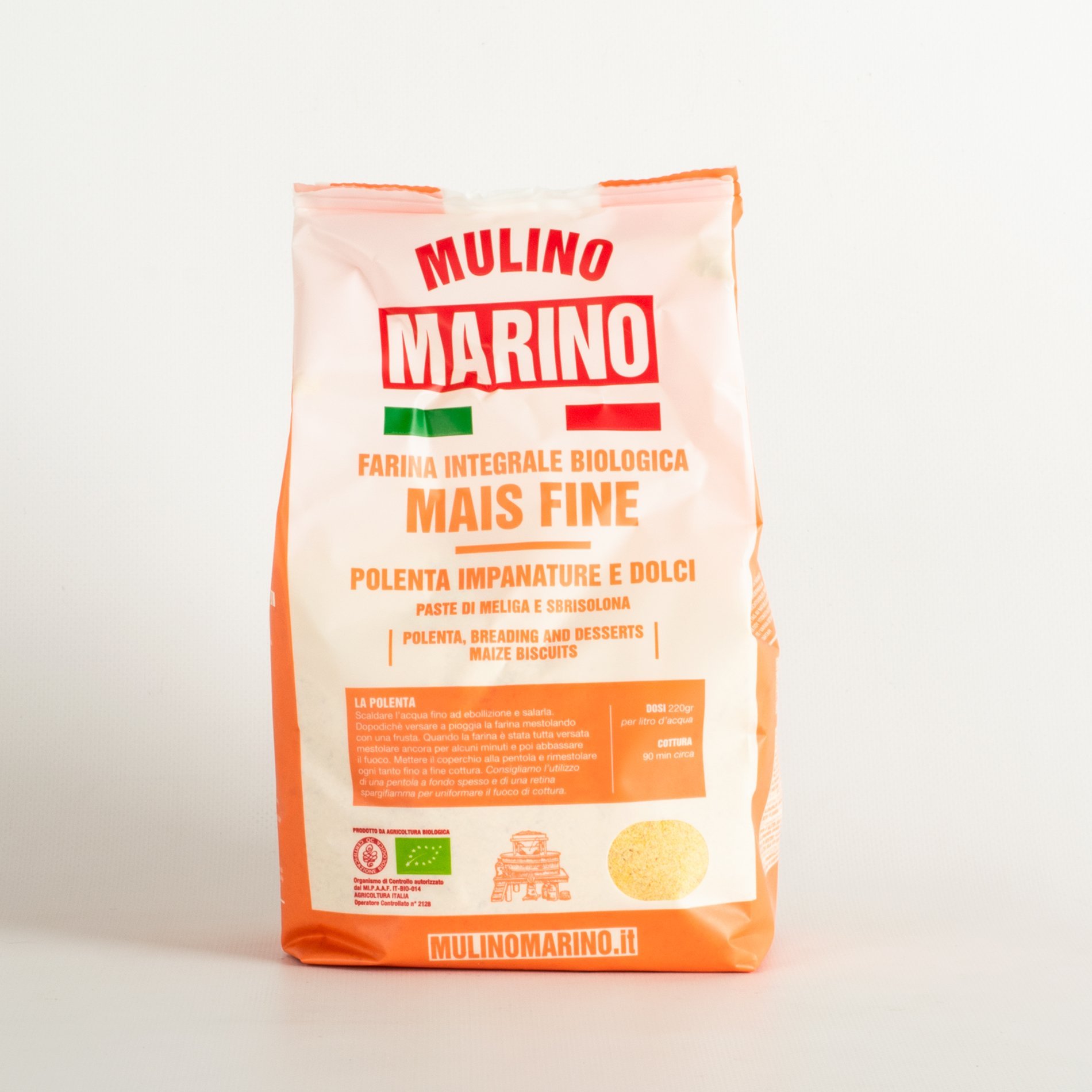 This whole flour is produced by Mulino Marino with different varieties of local corn from Langa area and others varieties grown organically, dried under the sun and the wind, without any preservatives. It may contain traces of gluten.
