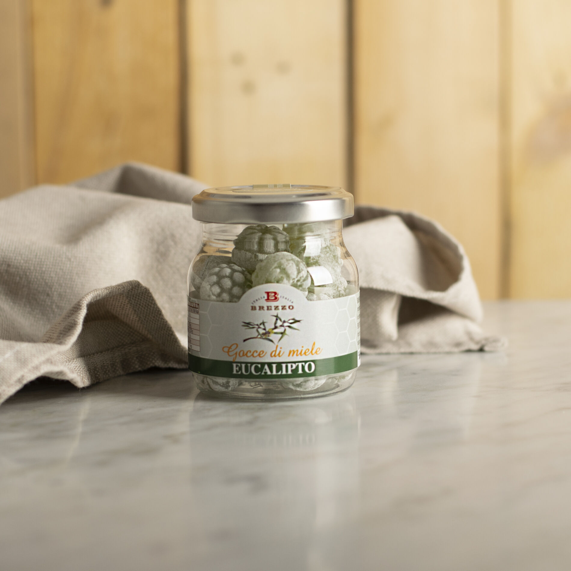 Sugar, GlucSugar, Glucose syrup, Honey 10%, Eucalyptus essential oil, coloring: chlorophyll.