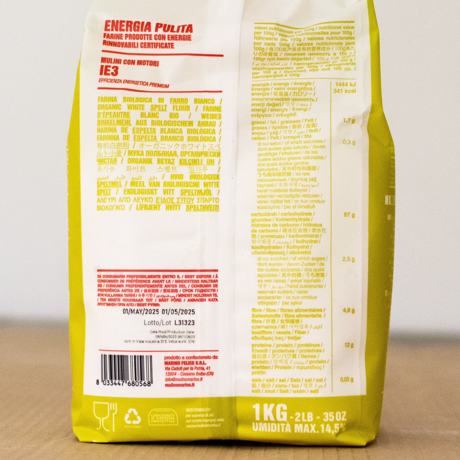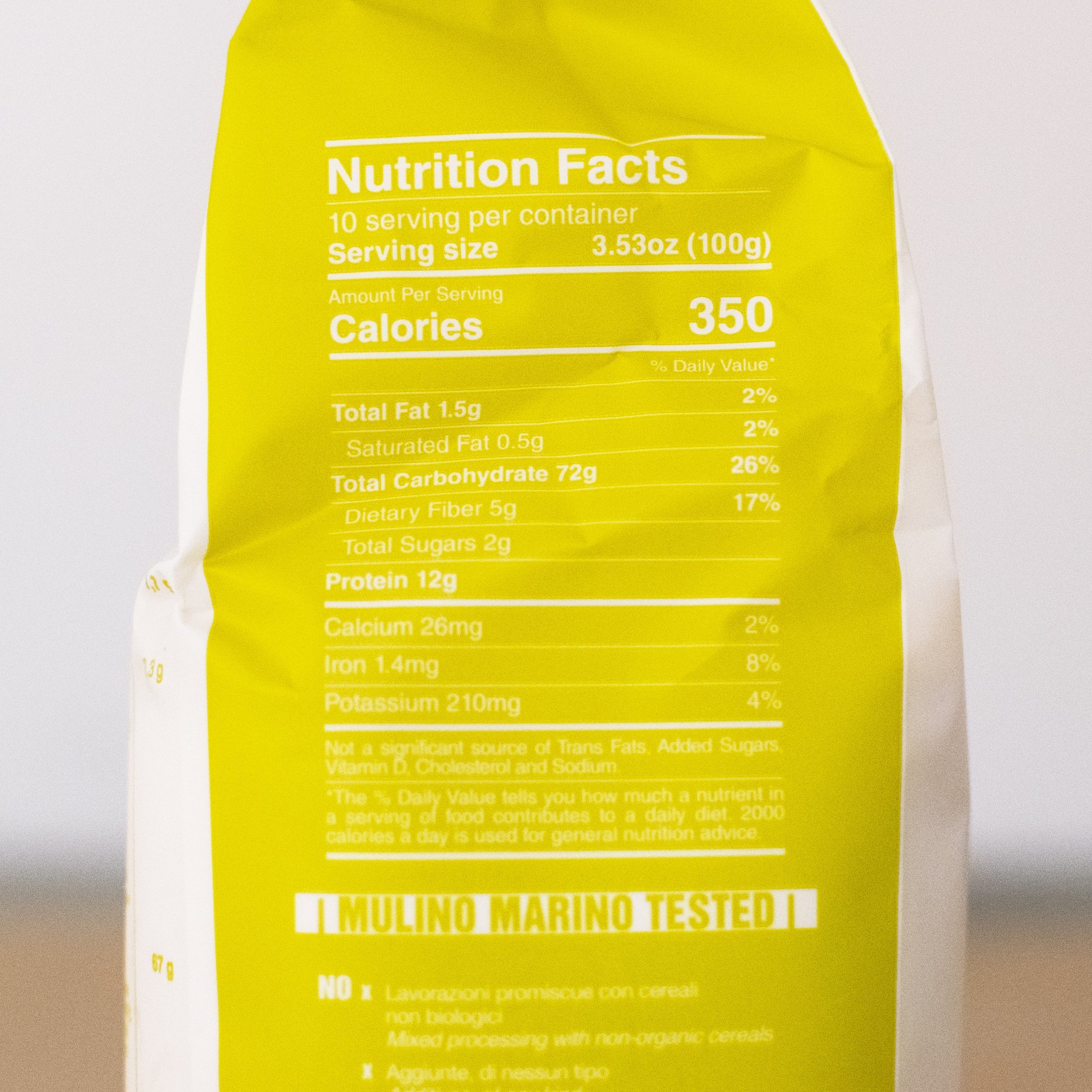 This flour is a raw and natural product, obtained with no addition of preservatives, stabilizers or other additives. It is a flour produced with a natural stone milling process. Particularly suitable for who has food intolerance.
