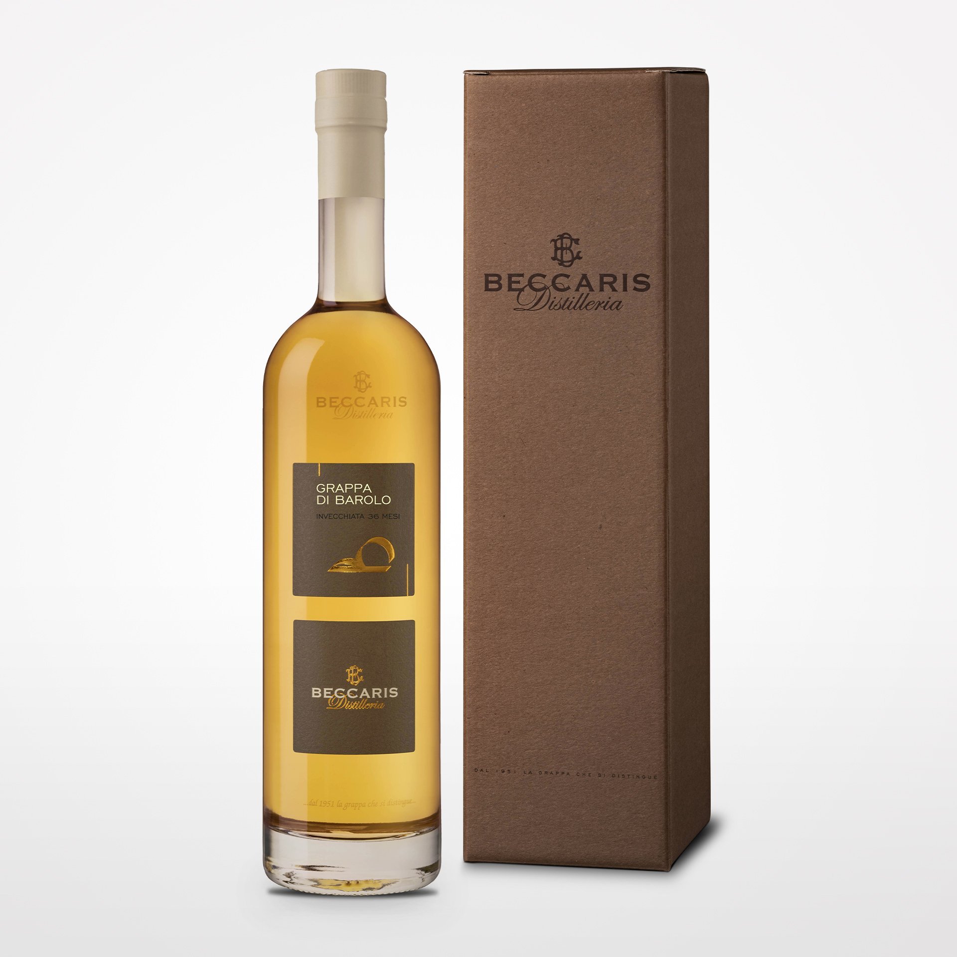 The Grappa Barolo 36 months of Beccaris Distillery was re-proposed in this "36 months" line to recall the old classification based on the aging of grappas, previously divided into Reserve (18 months) and Stravecchia (36 months).