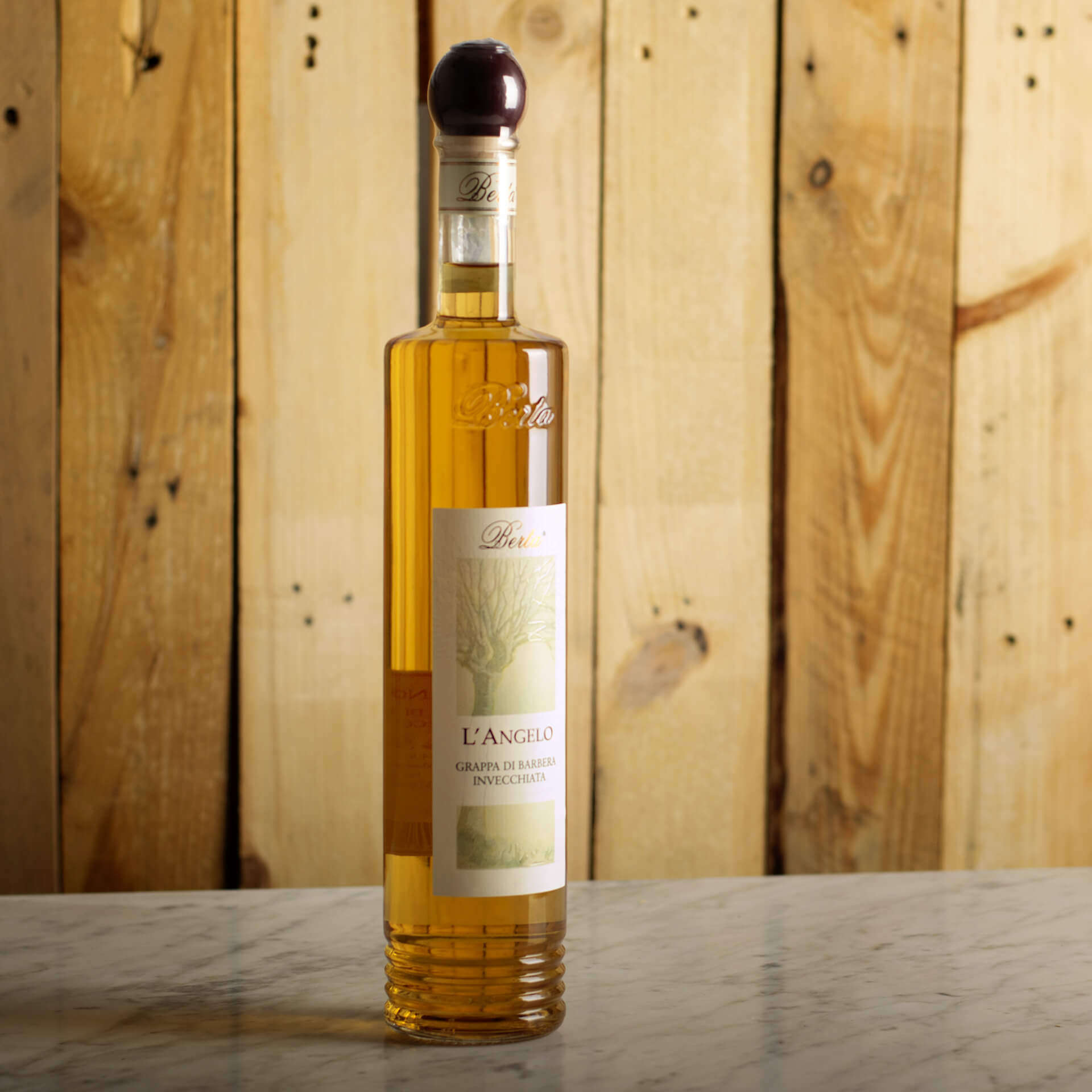 The grappa "L'Angelo" of Berta comes about for the distillation of the grape-skins which come from the typical zones of Barbera, selectioned by the best producers. It is characterized by its soft round taste, hues of vanilla and cacao.
