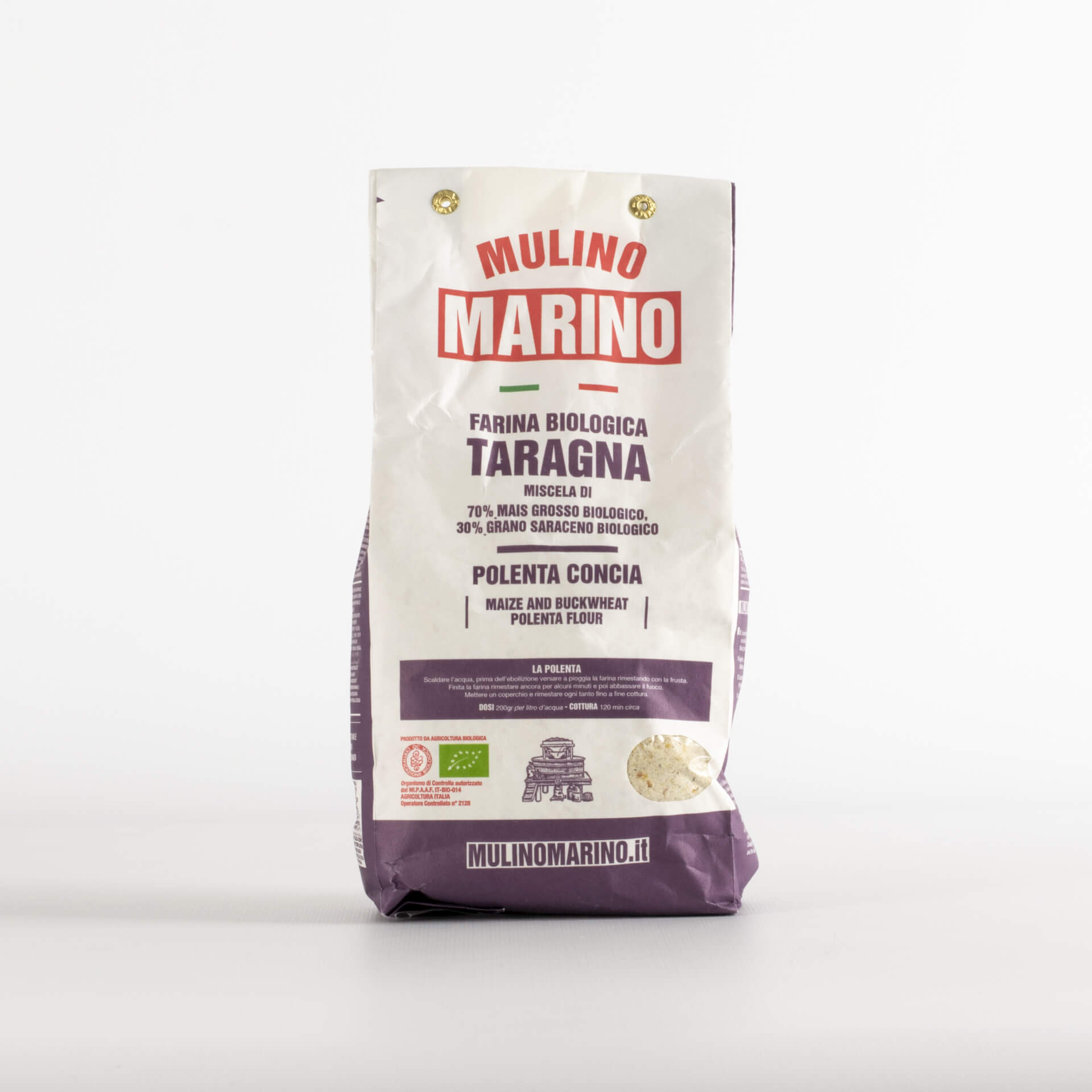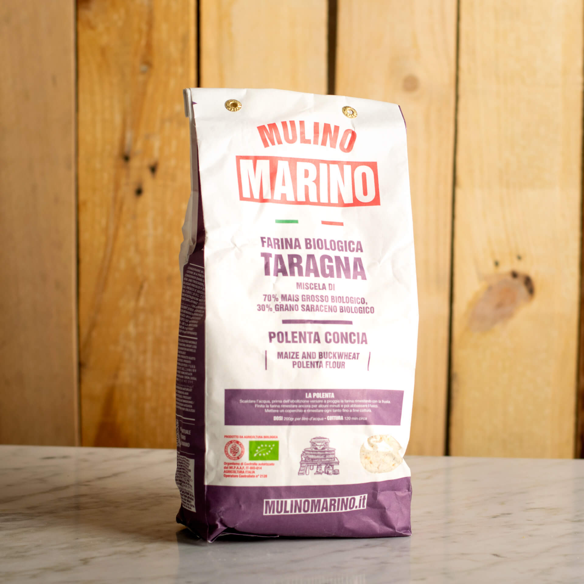 This flour produced by Mulino Marino with local varieties of fine corn from Langa region and other varieties cultivated following the principles of organic agriculture, dried in the wind and sun with no preservatives. It is a product with no preservatives and may contain traces of gluten.