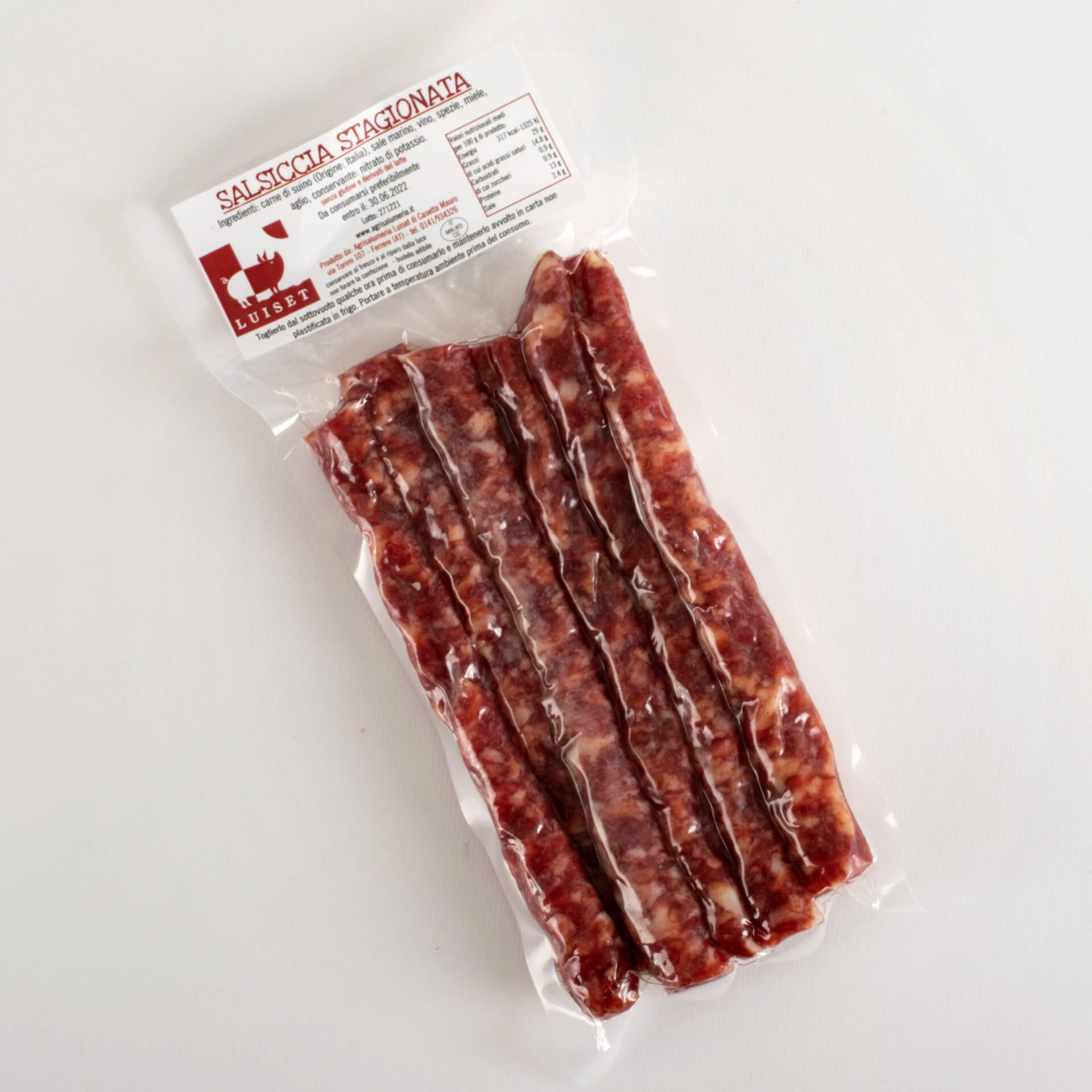 Italian pork, sea salt, wine, spices, honey, garlic, preservative: potassium nitrate.