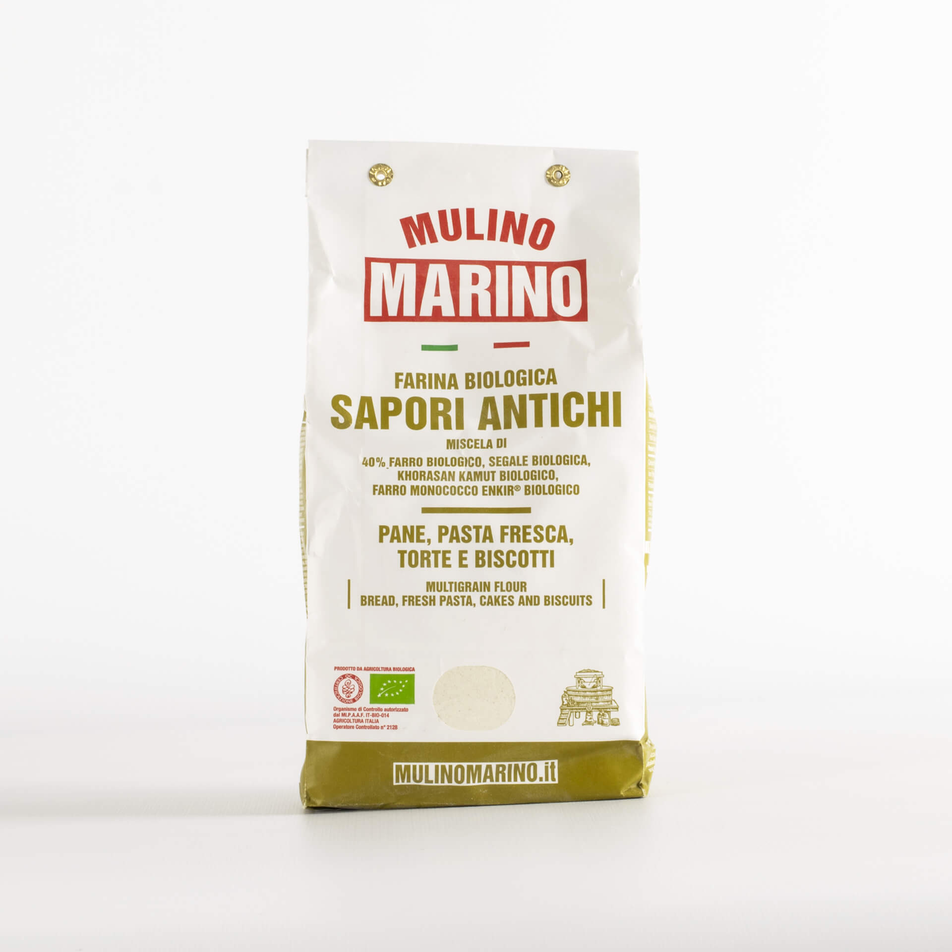 Questa farina ripercorre la storia dei cereali. E’ composta dai quattro cereali Farro, Enkir, Segale e Kamut senza frumento.