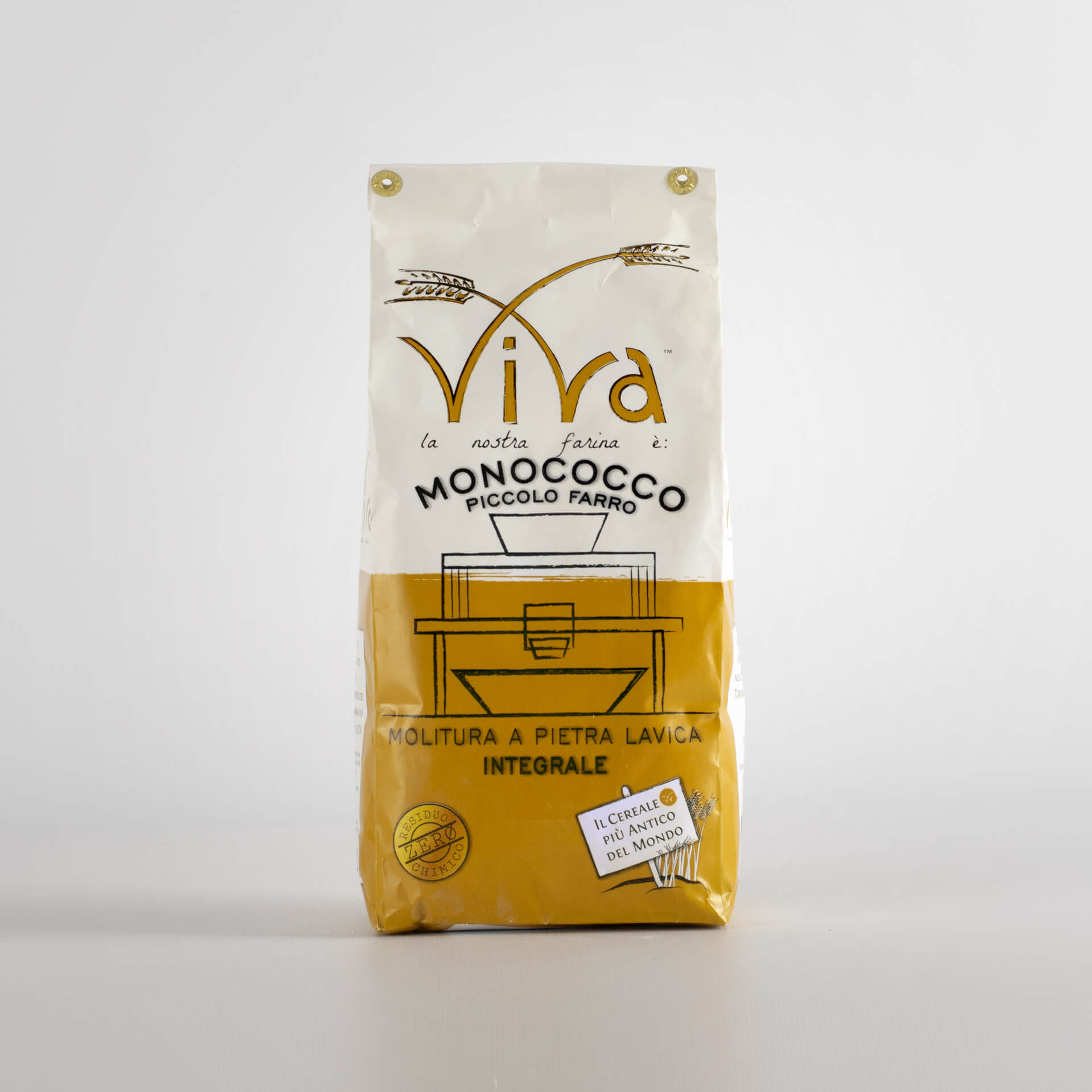Farina Integrale di Farro Monococco. Per pani a lievito madre di media e grossa pezzatura, biscotti. Indicata per idratazioni comprese tra il 60 e il 70% con maturazioni fino a 24 ore a temperatura controllata.