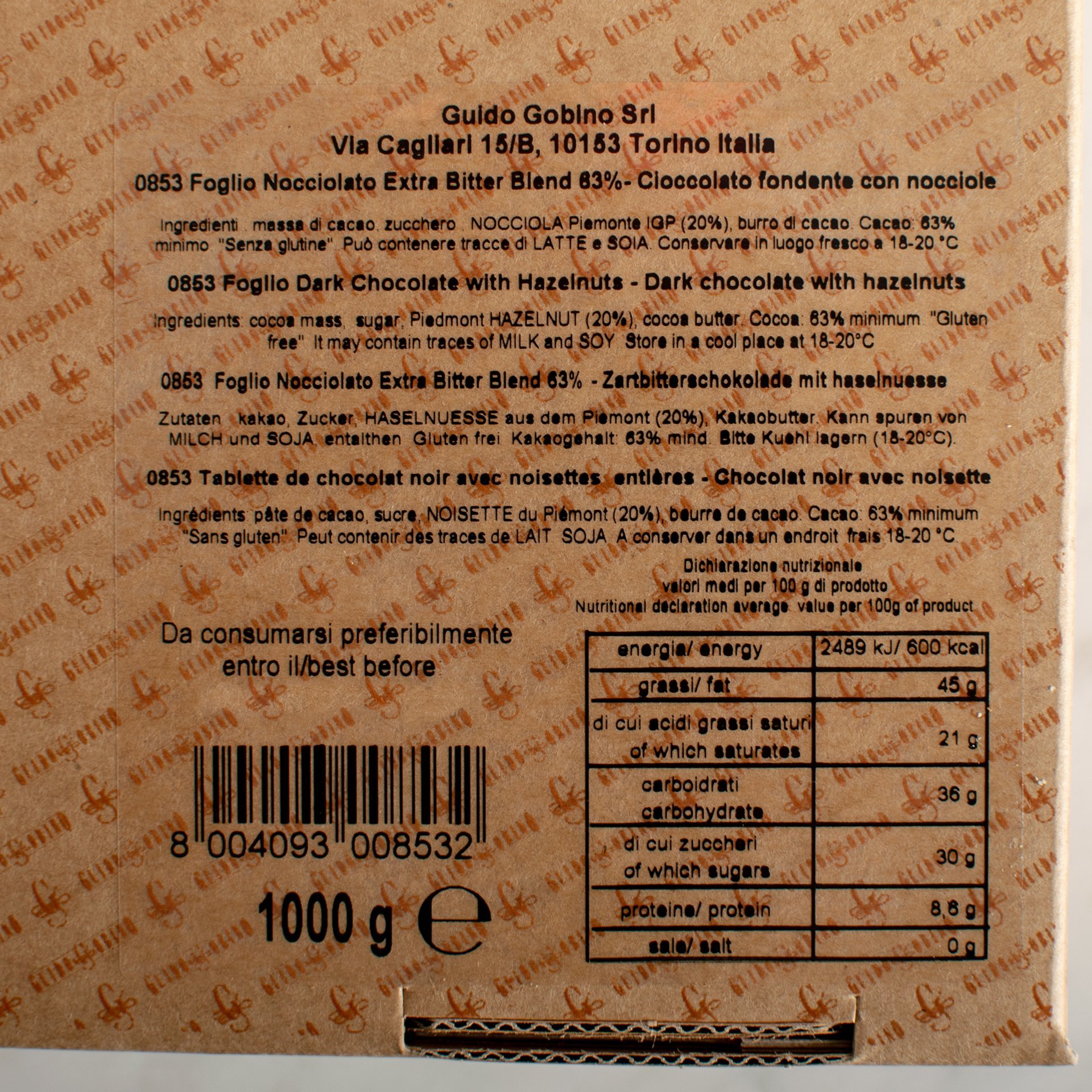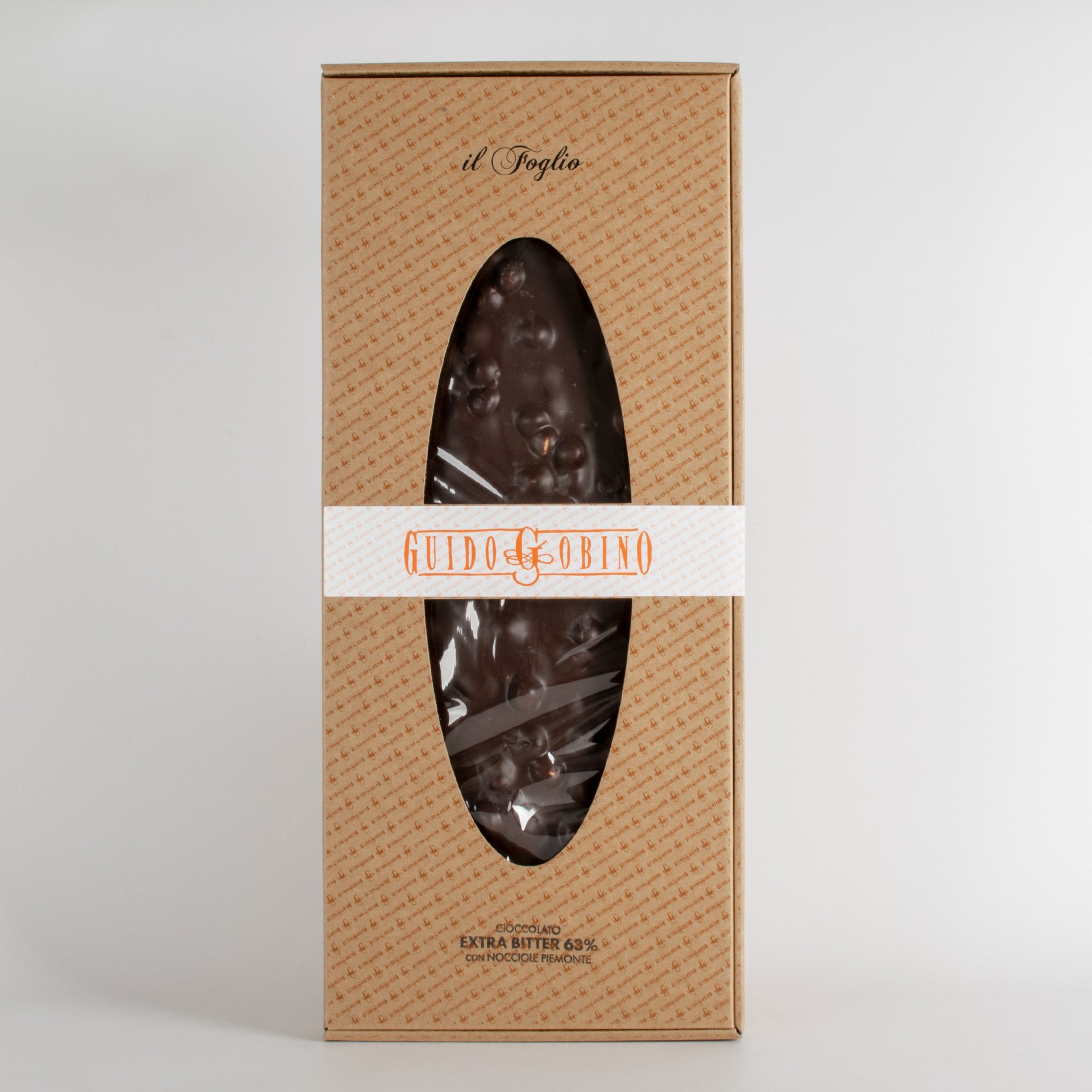 La storia di questo foglio di cioccolato Extra-Bitter è legata alle Nocciole Piemonte I.G.P., che selezionate e tostate vengono ricoperte da una colata di Cioccolato Extra-Fondente.
