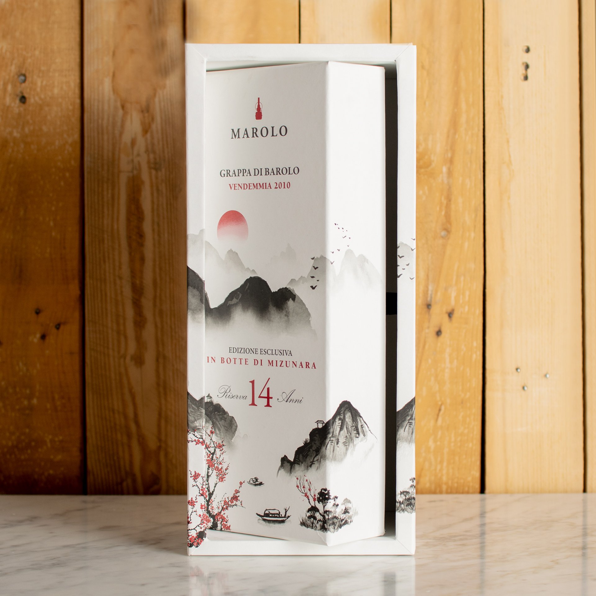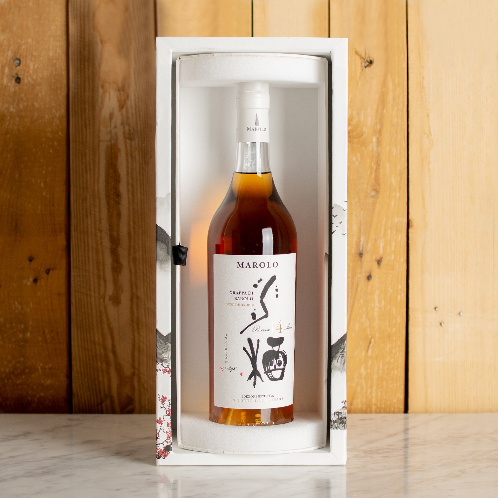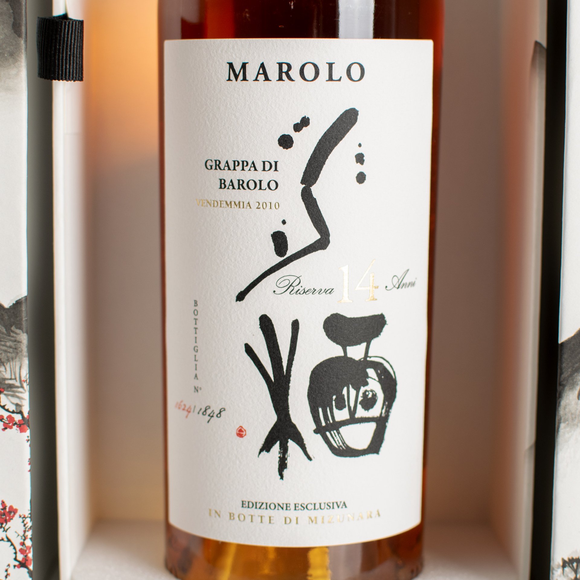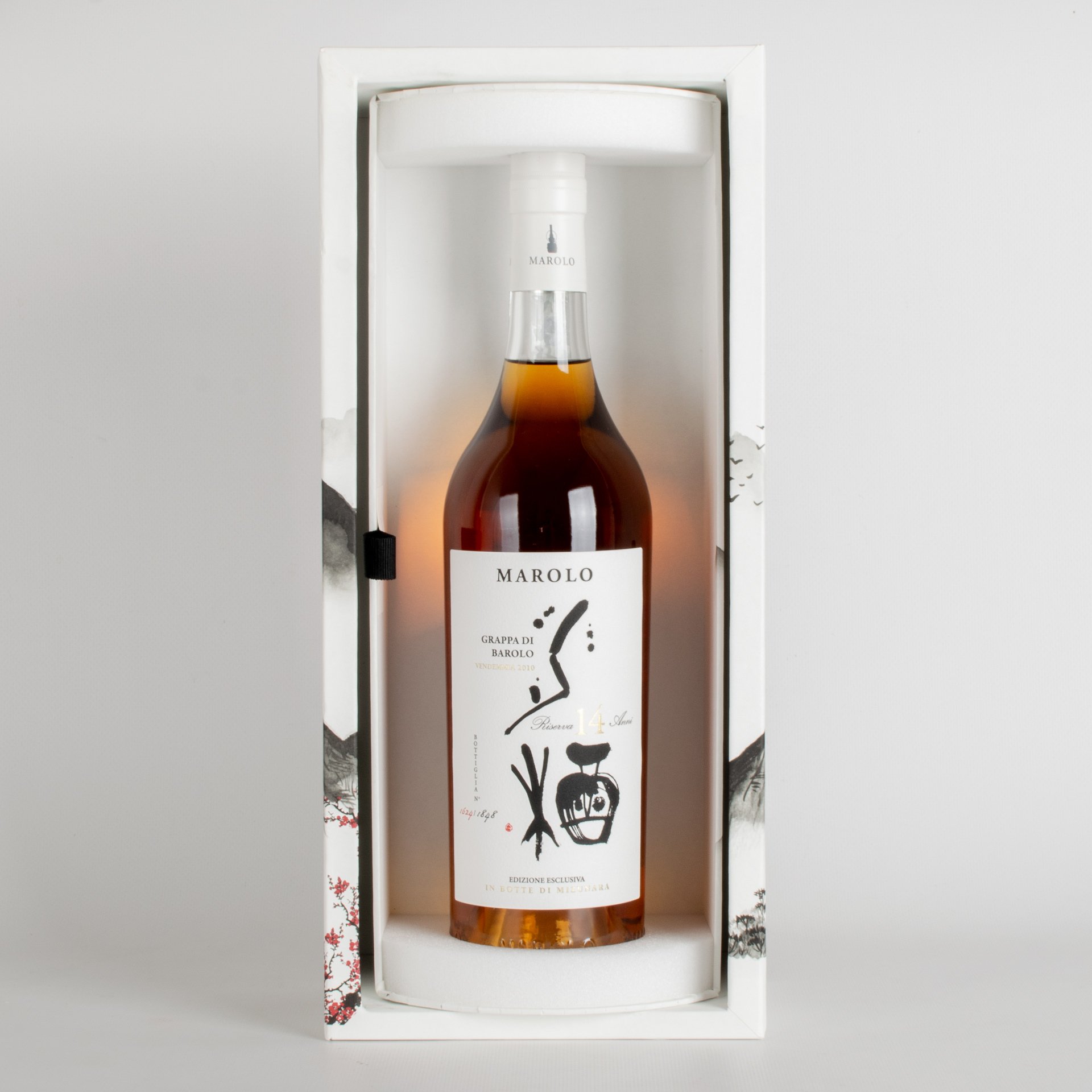 La 2010 è considerata una delle vendemmie più equilibrate ed eleganti per il Barolo del nuovo millennio; le condizioni climatiche asciutte e regolari hanno favorito maturazioni lente, con unʼeccellente concentrazione aromatica nelle vinacce. È da questa materia prima, selezionata e distillata con metodo discontinuo in alambicco, che nasce questa Grappa di Barolo Riserva: 11 anni di affinamento in botti di rovere ex-Marsala, secondo lo stile Marolo, e ulteriori 3 anni di finishing in botti di Mizunara, per un totale di 14 anni di evoluzione.