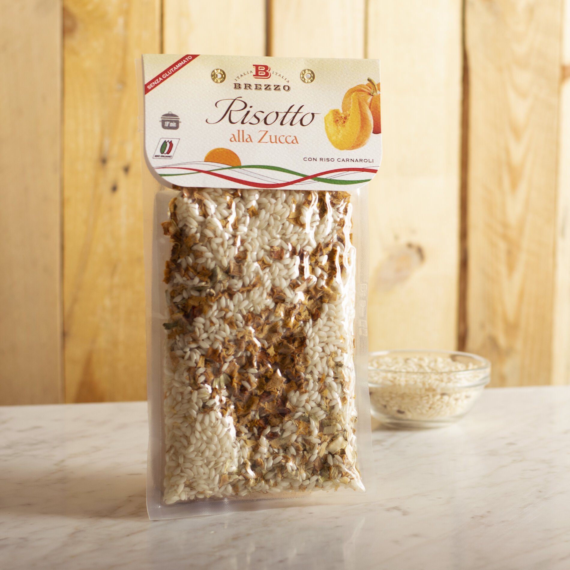 Riso Carnaroli italiano, Zucca 6%, Porro, Cipolla.