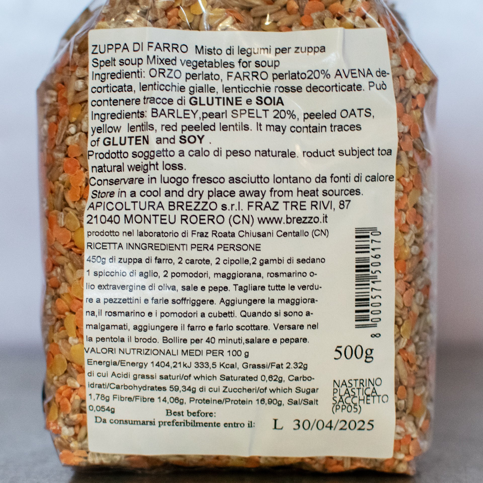 Per riscoprire in ogni momento la bontà di una zuppa fatta in casa esclusivamente con orzo perlato, Farro perlato, avena decorticata, lenticchie gialle, lenticchie rosse decorticate.